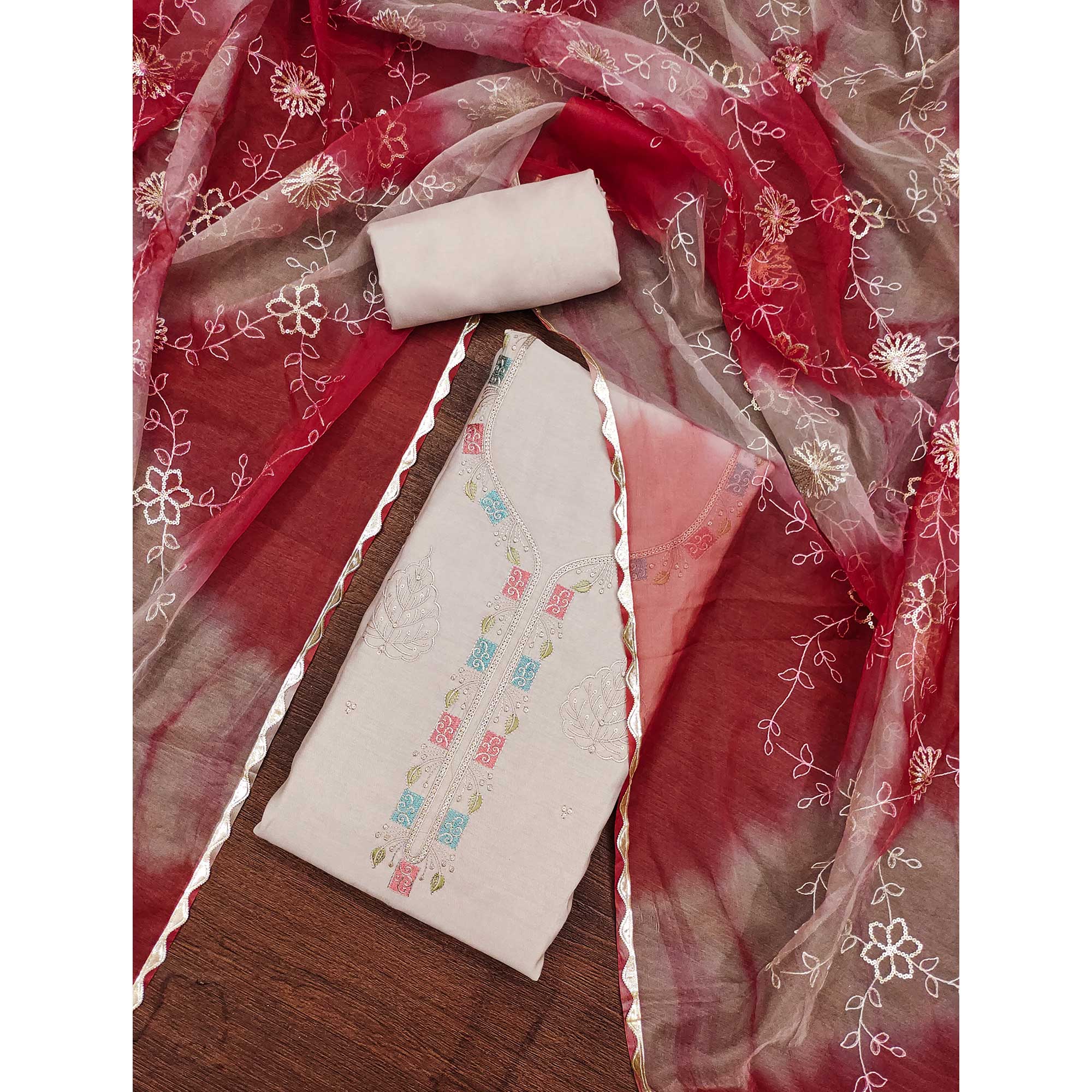 Beige Sequins Embroidered Cotton Silk Dress Material