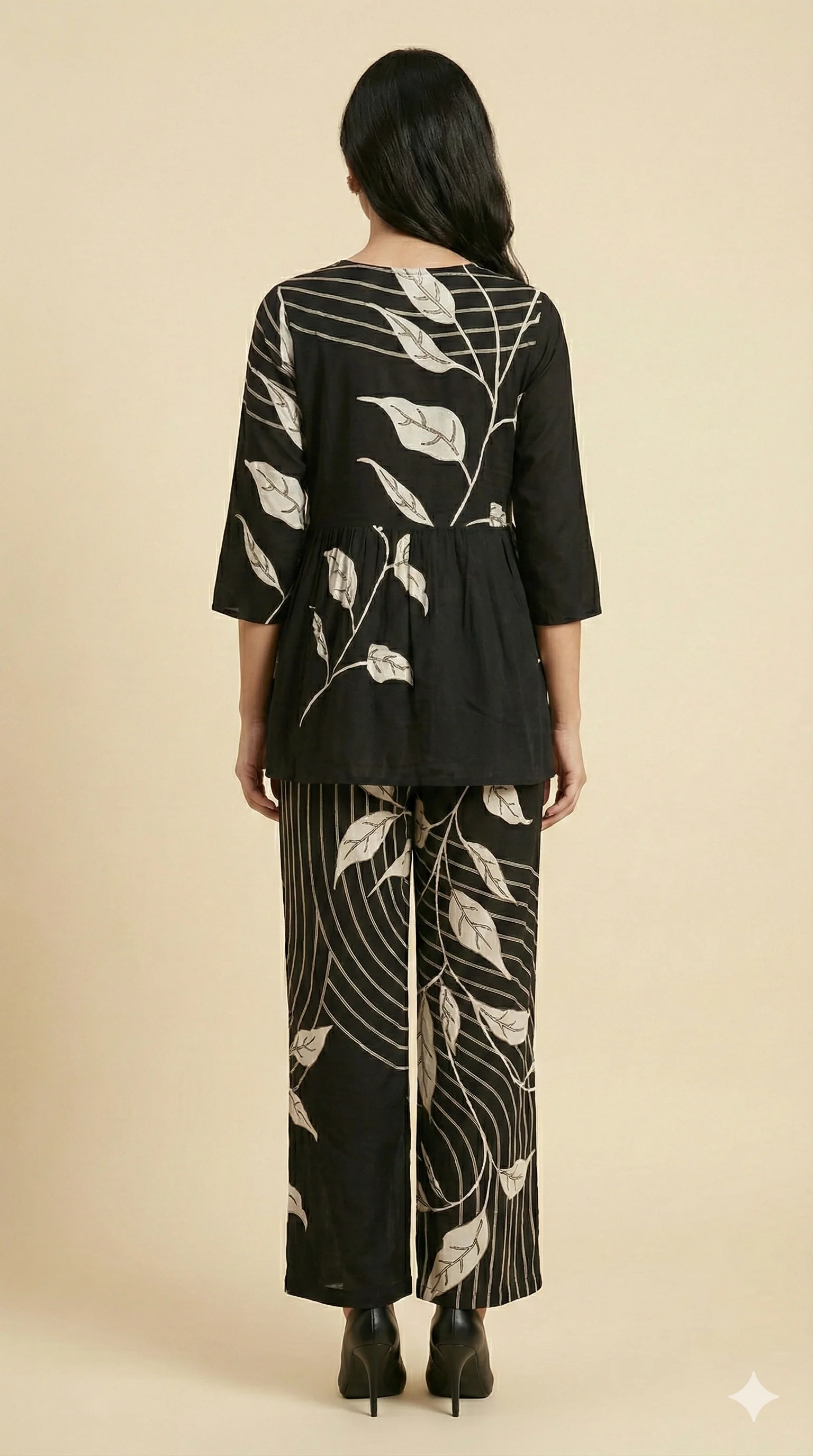Black Floral Print Rayon A-Line Top and Pant Set with Modern Ethnic Look