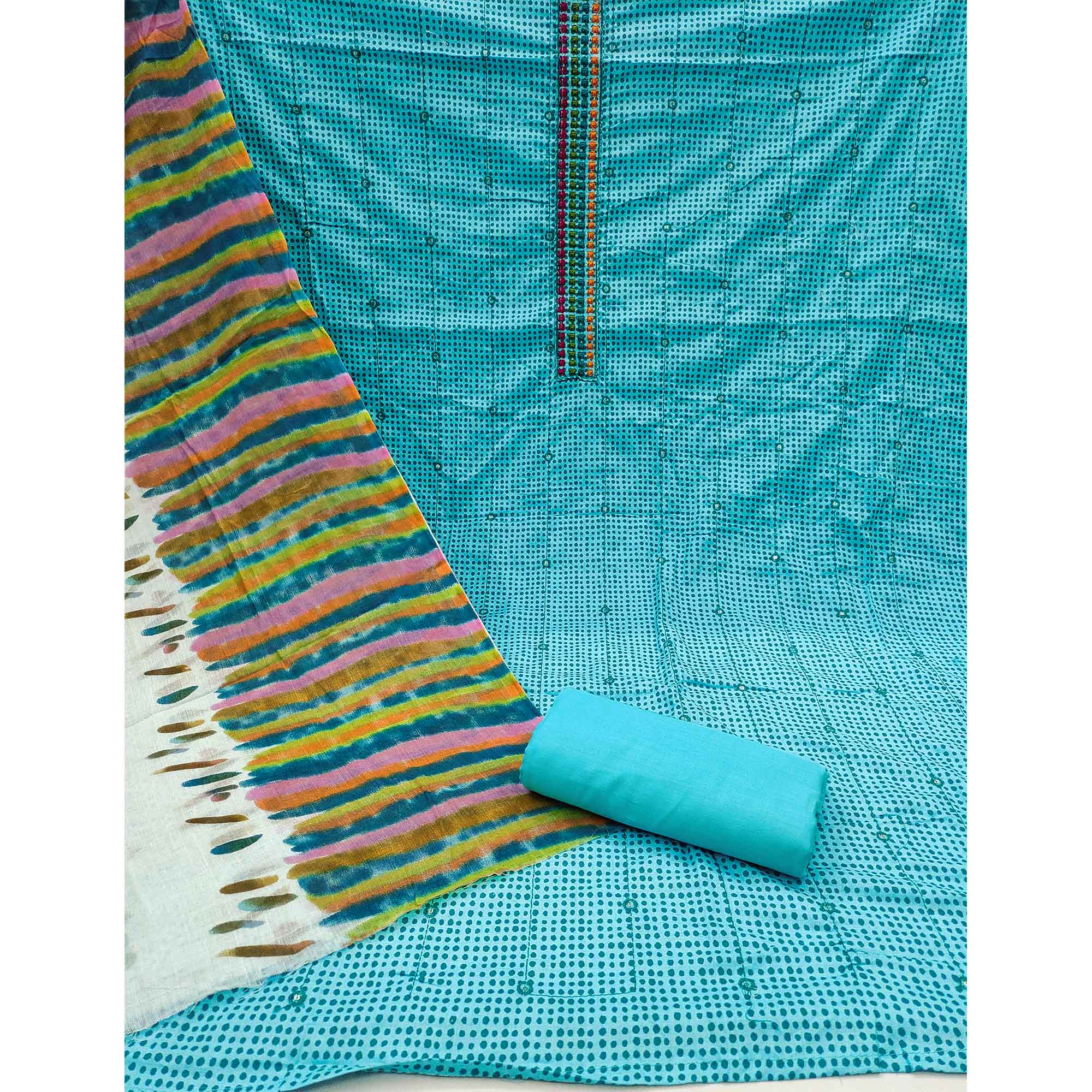 Blue Printed Pure Cotton Dress Material