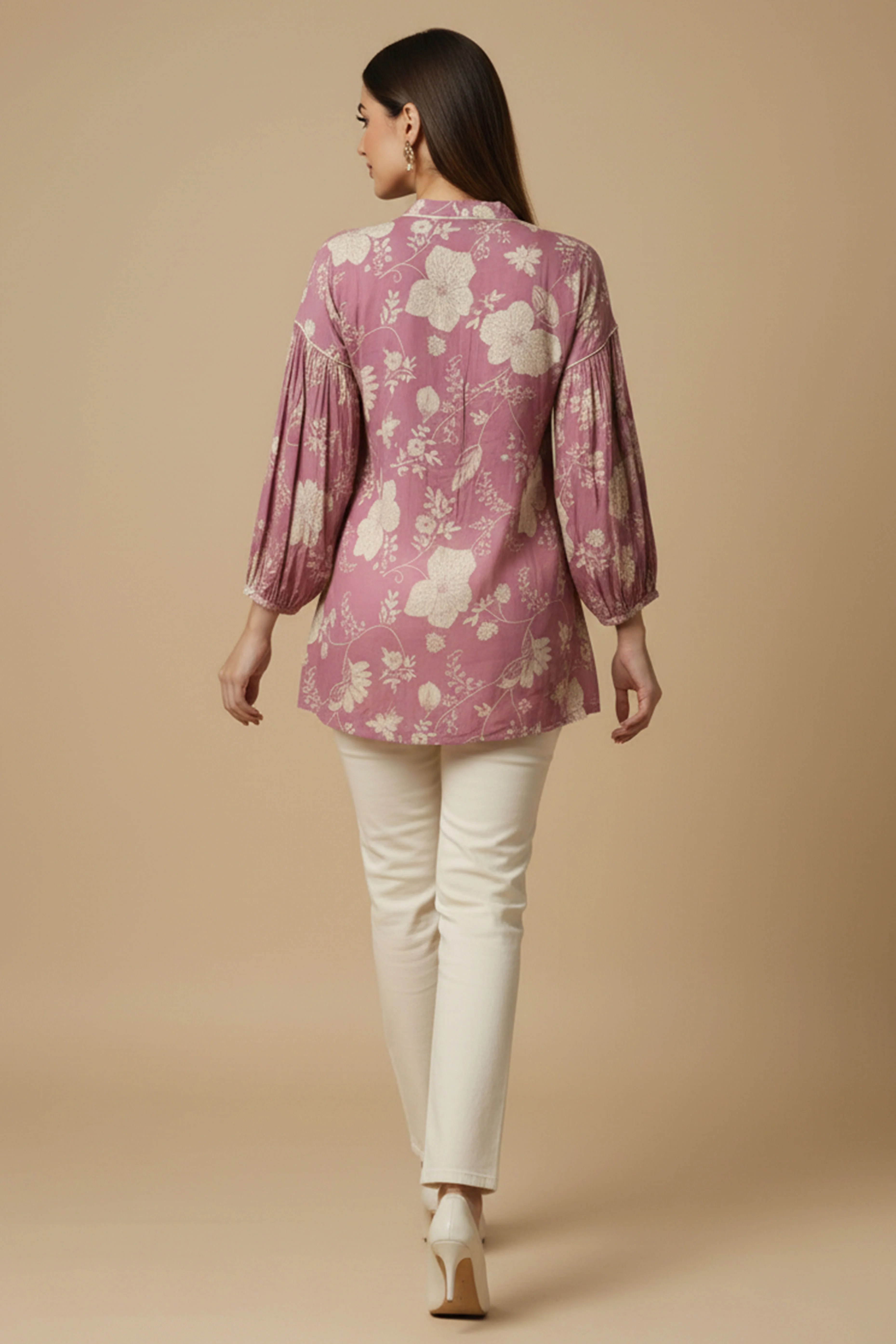 Light Pink Floral Printed Muslin Straight Top Perfect for Everyday Fashion