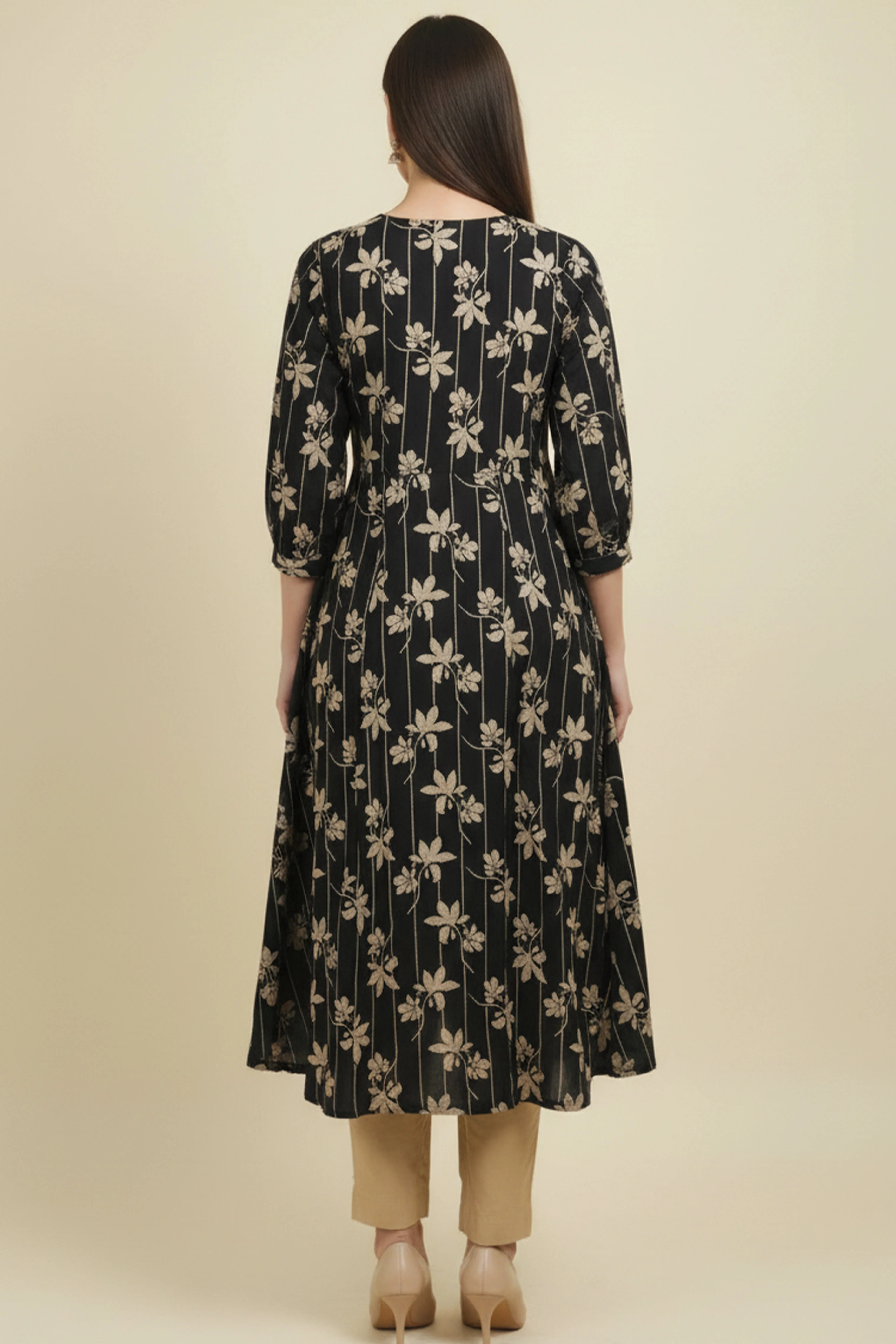 - Design & Work: Stylish black kurti featuring an elegant floral pattern for a chic and modern appeal.