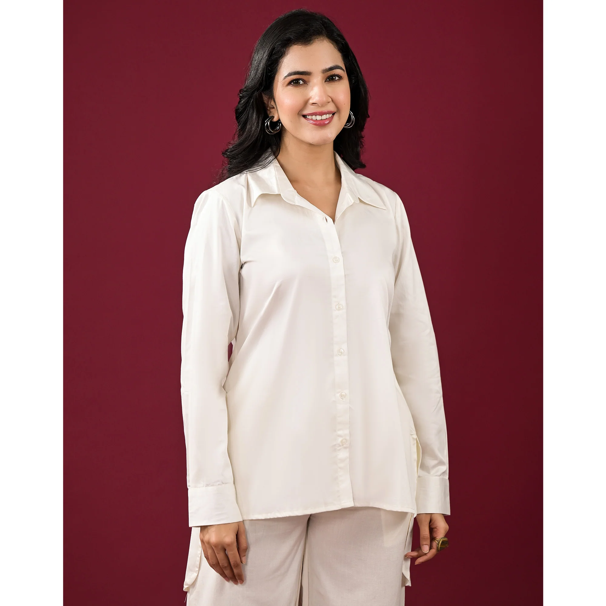 Off White colored top is fashioned on satin fabric which is lightweight and assures the wearer a perfect fit & comfort. This stitched top is solid pattern as shown. Ideal for office, casual, office wear & weekend get together.Â