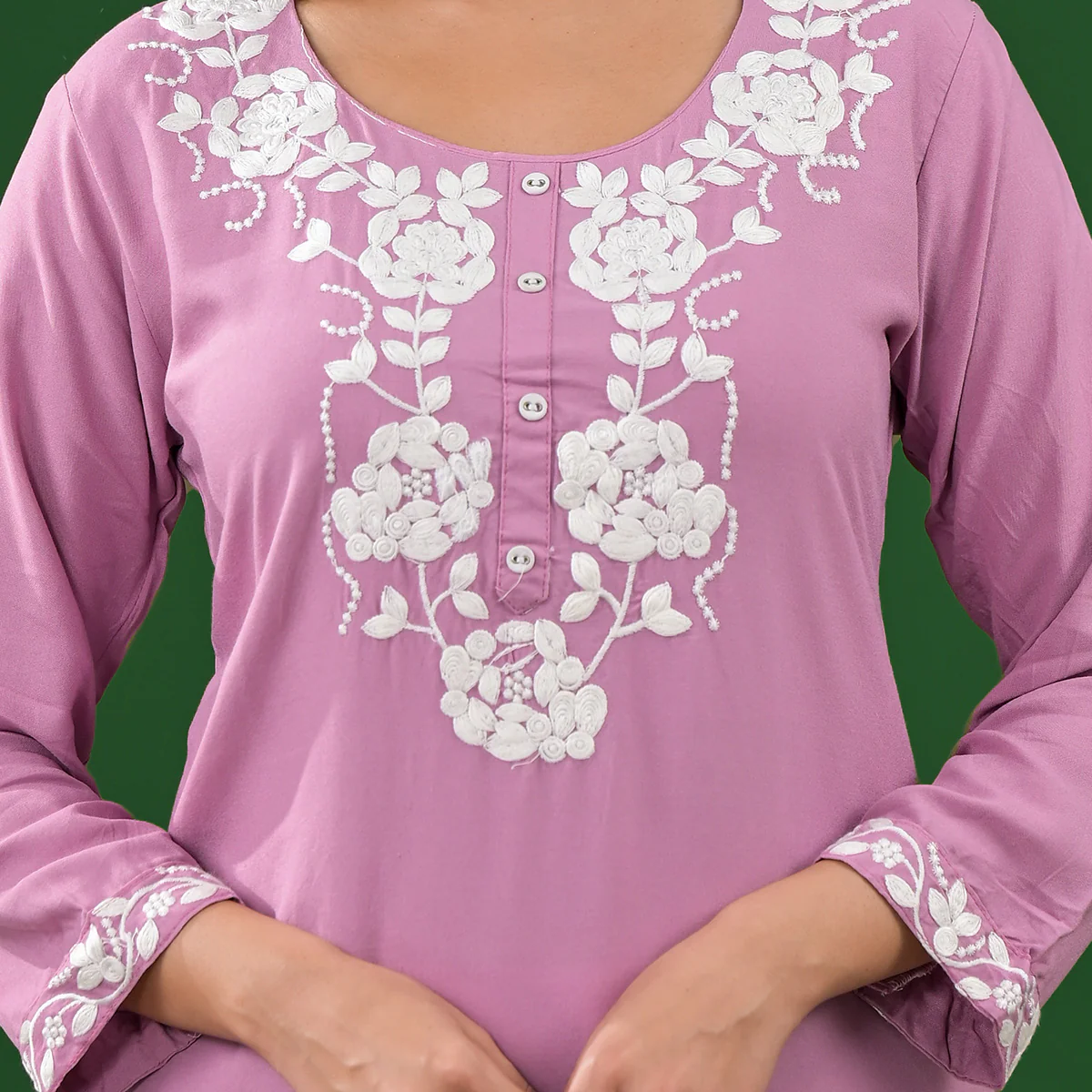 Pink Embroidered Rayon Straight Kurti